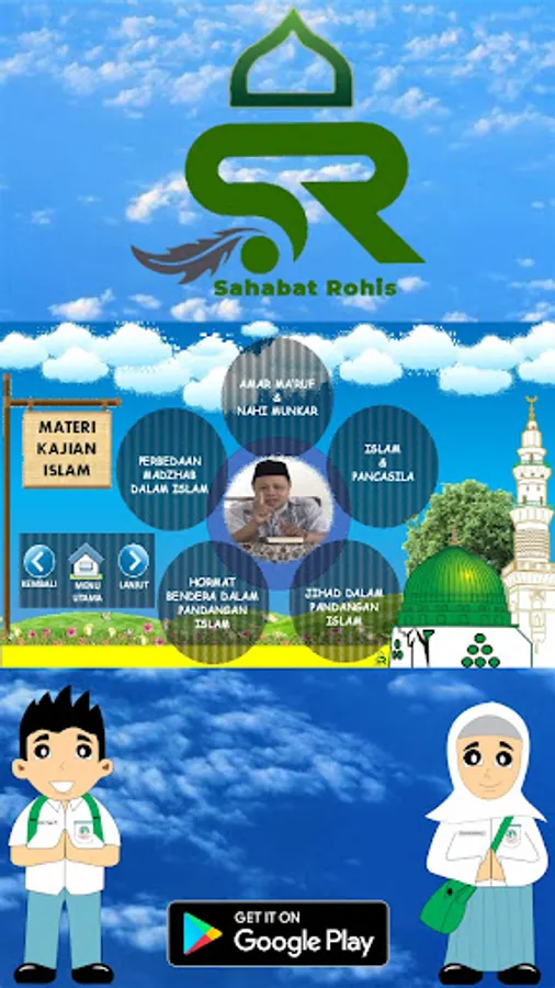 This "Sahabat Rohis" application is one of the digital media and alternative learning resources for ROHIS students in carrying out one of its programs, "Islamic Studies". This application runs in landscape mode automatically.