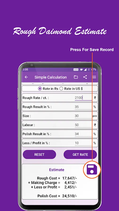 - You can Save Estimate Record.