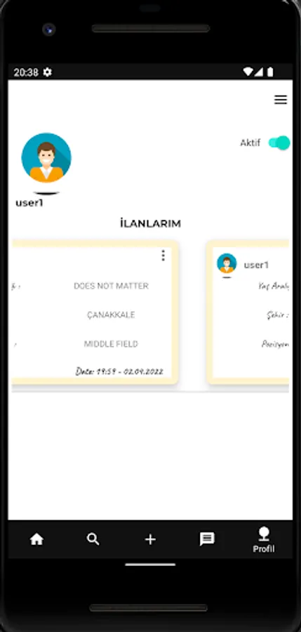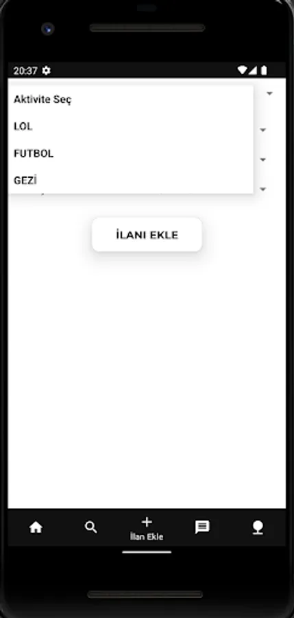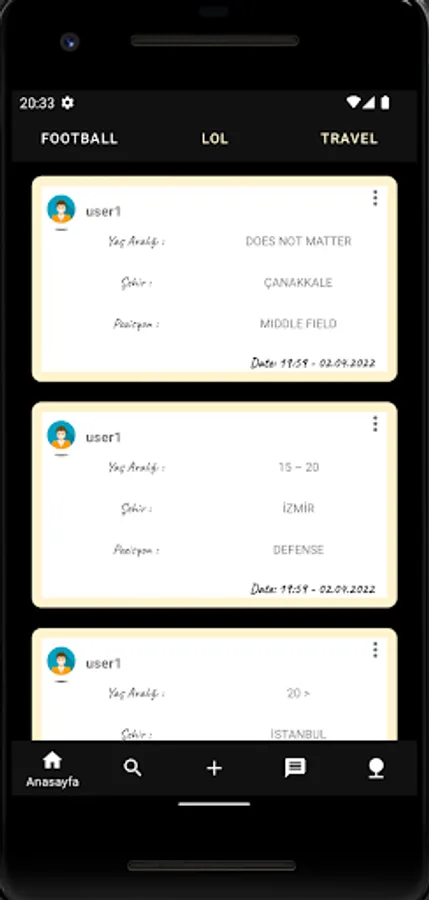 The user can create an activity by messaging other users by posting an advertisement under the heading of certain activities or by applying to the advertisements. In this way, the user can have a good time and socialize with people whose speech and profile he likes.
