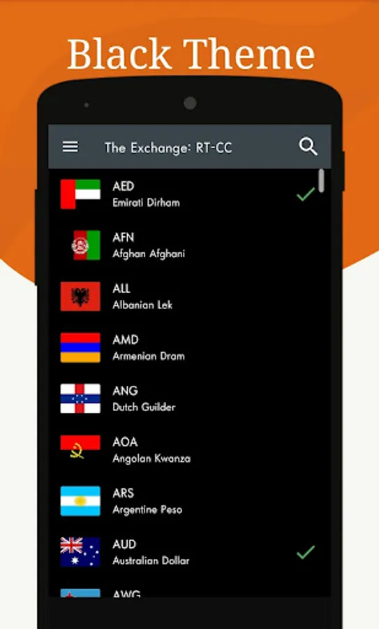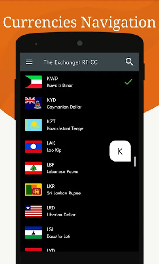 ☆ Search and filter for currencies by name or ISO 4217 code.