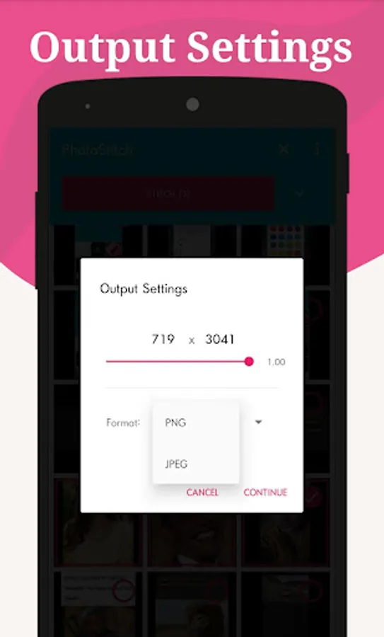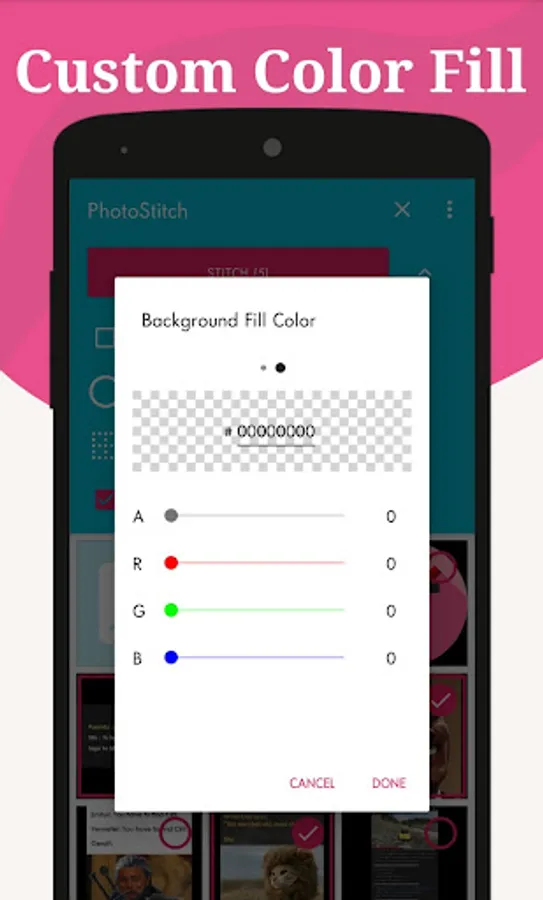 PhotoStitch is an simple photo editor application in which user can add or stack multiple photos/images one after the another easily with some useful background customizations.