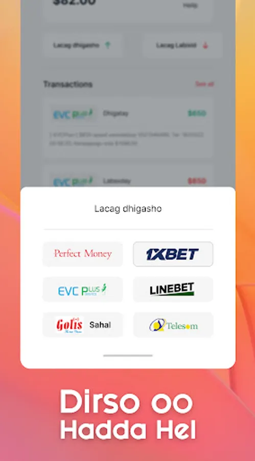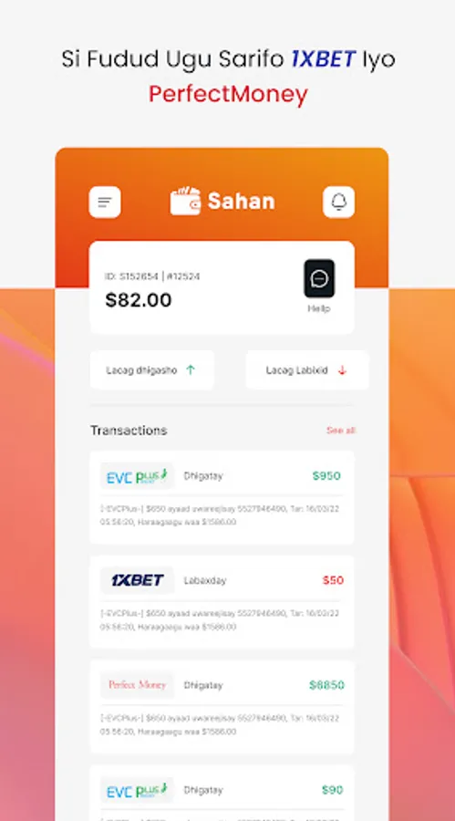 Sahan Online waa app sarifa lacagaha qalaad. oo aad ka heli kartid EVC to perfect money