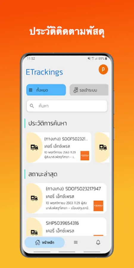 ETrackings Application tracking parcel and alert notification