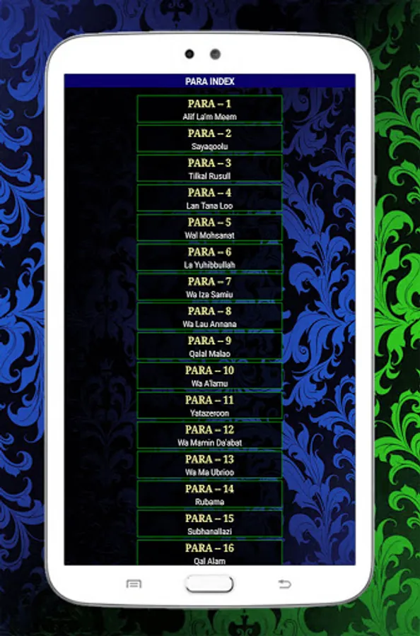All sajdah ayaat are highlighted with light yellow color and starting of each para is prominent by first line with light green color background. Screen will not turn off while you are reading.