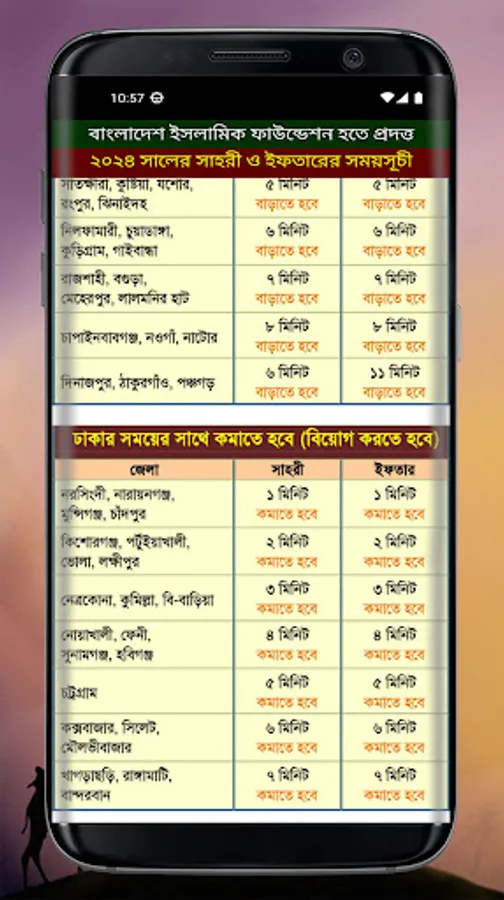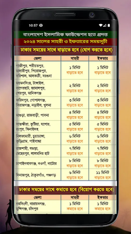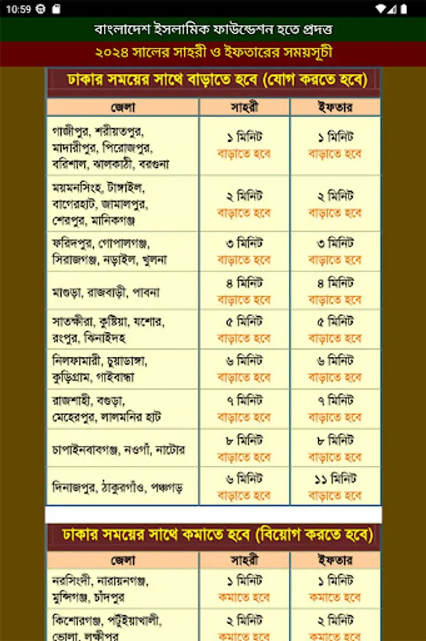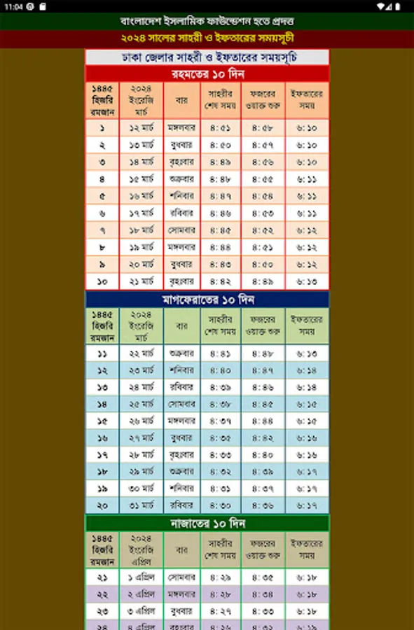 Sahri and Iftar schedule for the month of Ramadan 1445 Hijri 2024 for all districts of Bangladesh provided by Islamic Foundation. Ramadan is observed in the 9th month of the Islamic calendar. This month is a very important month for Muslims. The month of mercy, forgiveness and salvation. This app provides Ramadan calendar 2024.