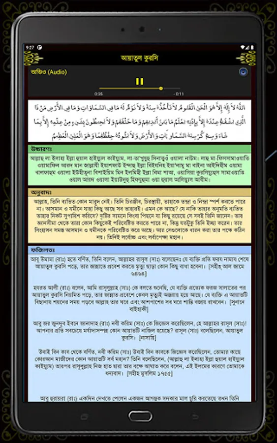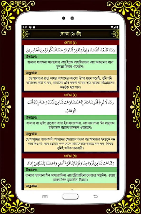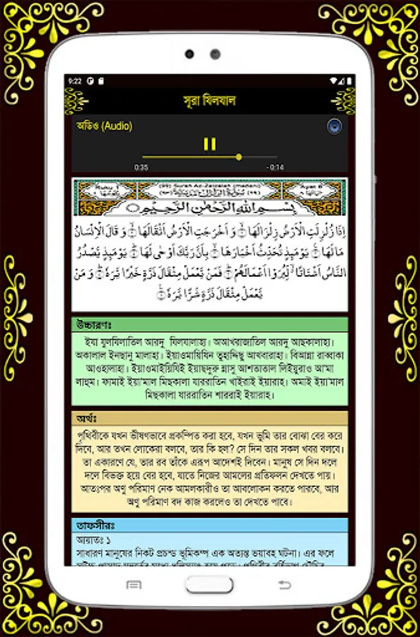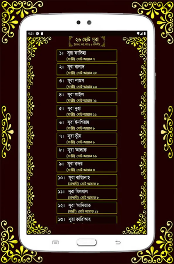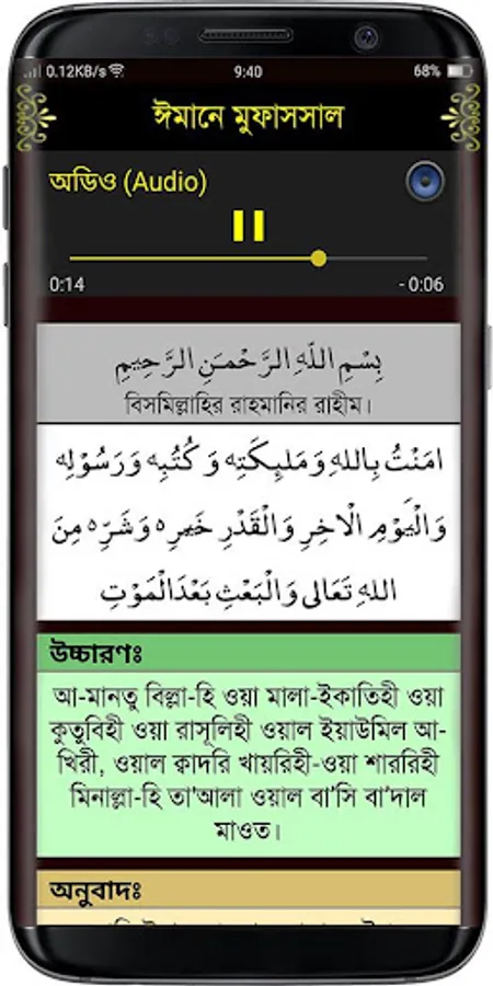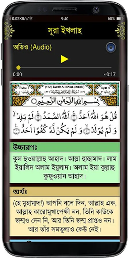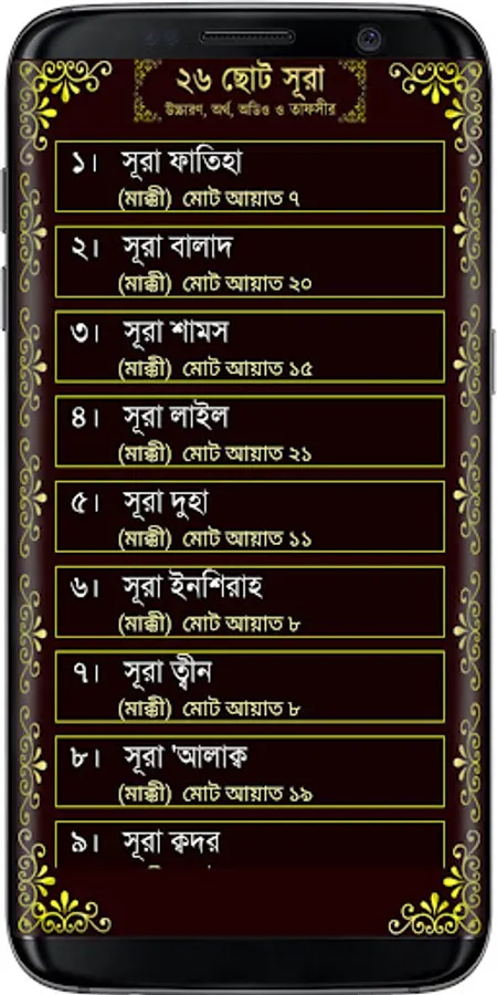 Here are 27 short surahs with Bengali pronunciation, meaning, mp3 file and tafsir of suras. So that you can easily hear, read and understand the Surahs. Those who have not yet learned Surah to recite Namaz can easily learn from this app or if you have a small child in your house you can also teach and there is Tafsir for detailed interpretation of Surahs. There are also 6 khana kalema with pronunciation and meaning. There are also 6 Durood Sharif utterances, translations and all the benefits including virtues are given in detail. There are also 20 simple and short prayers. And many additional necessary intentions, prayers and doa have been given.