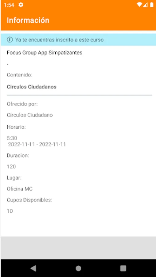 It is an app for supporters of Movimiento Ciudadano in Campeche that allows them to find out about events, news and activities of the organization.