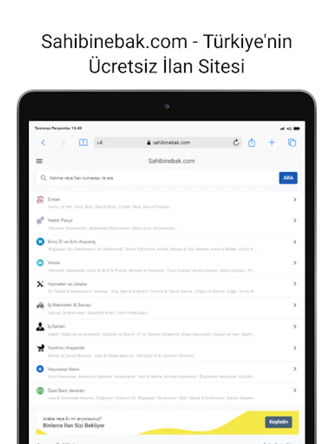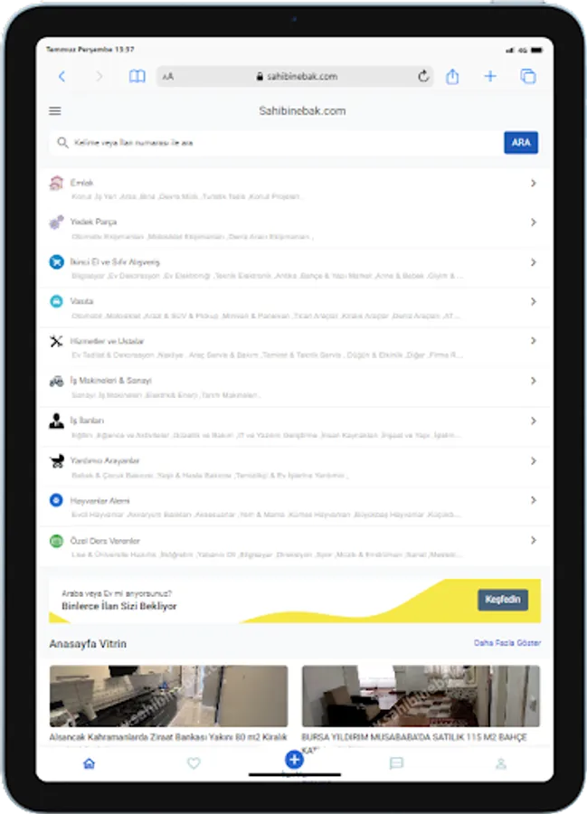 sahibinden.com is an online shopping and advertisement platform where advertisements and e-commerce transactions are made in many categories such as apartments for sale and rent, new and used cars, shopping products, job postings, craftsmen and services, construction equipment and spare parts.