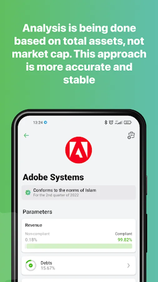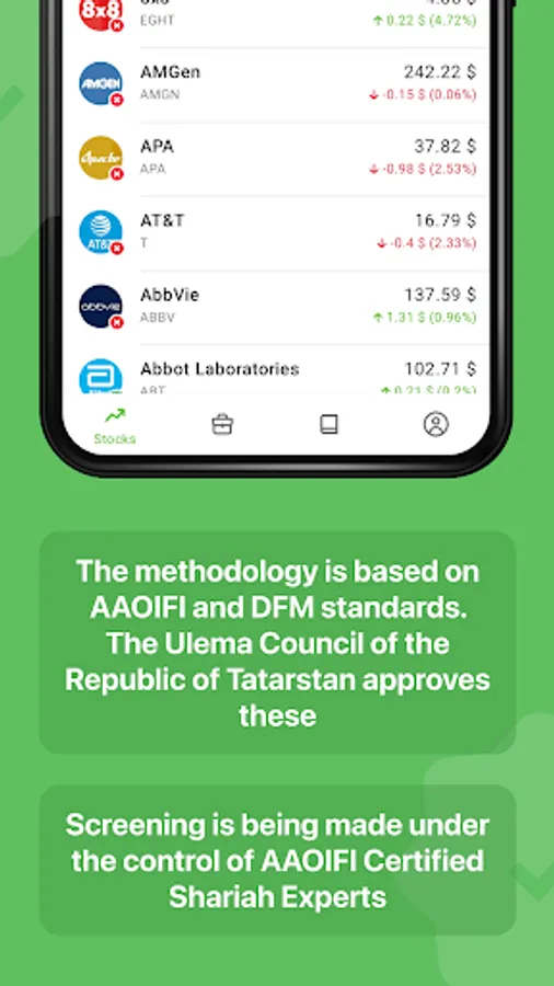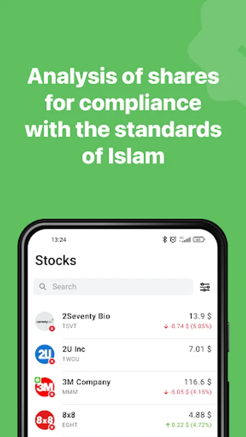 In this app you will find Sharia compliance status of more than 500 stocks around the world.