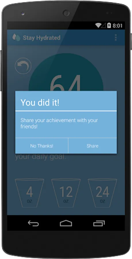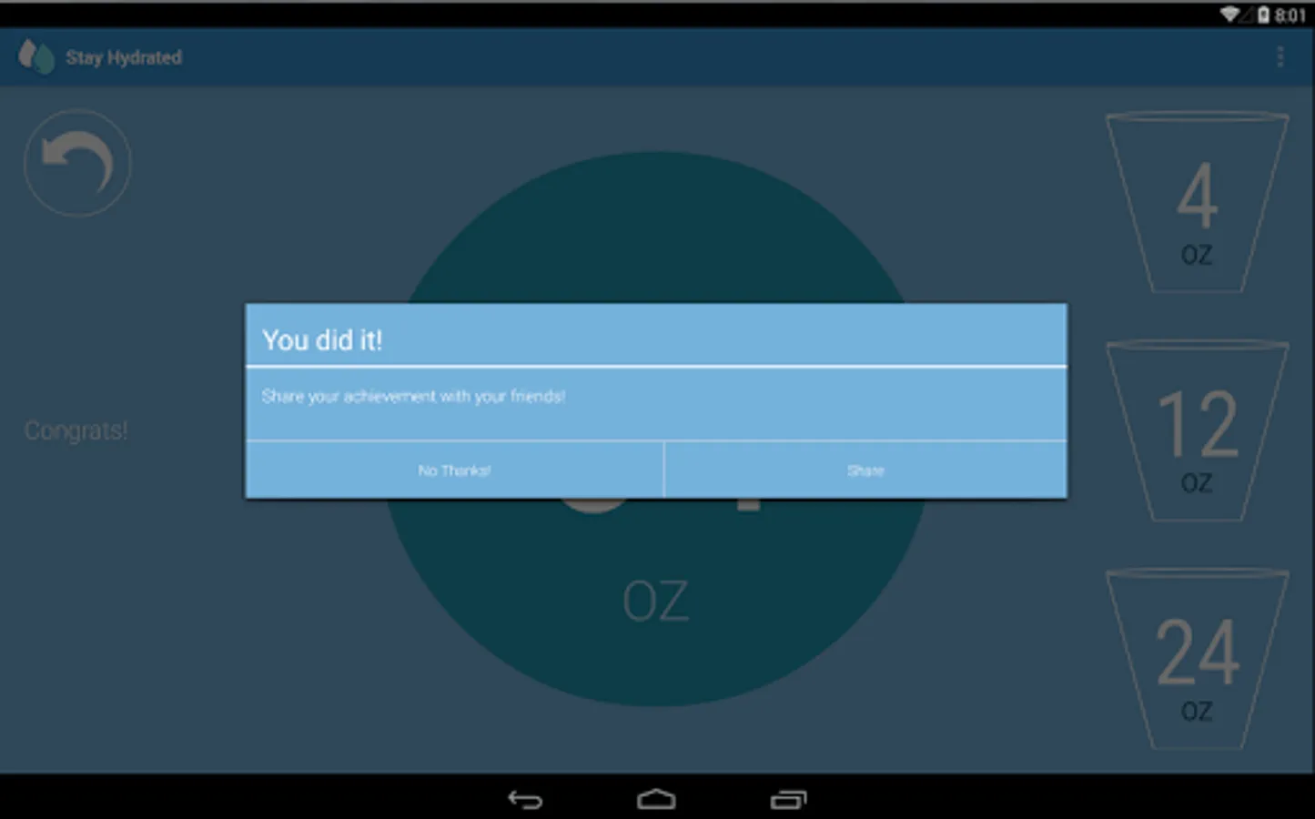 Do you forget to drink water often? Keep doing your work and let Stay Hydrated track your water intake and remind you to have water throughout the day.