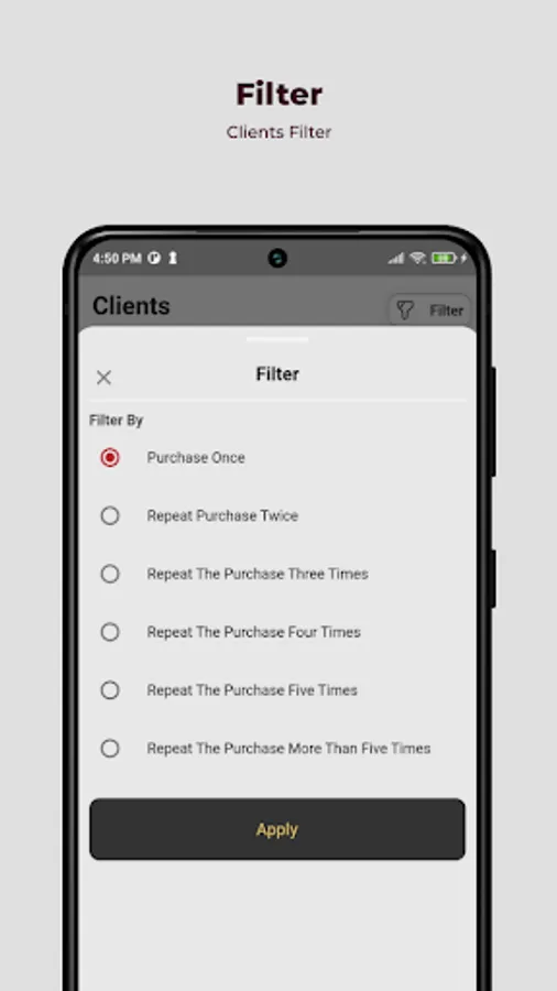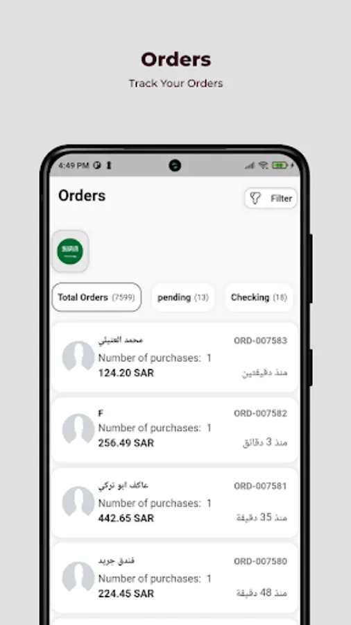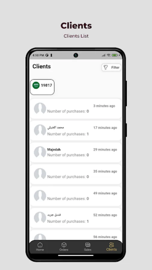 An application for follow up orders , sales , users
