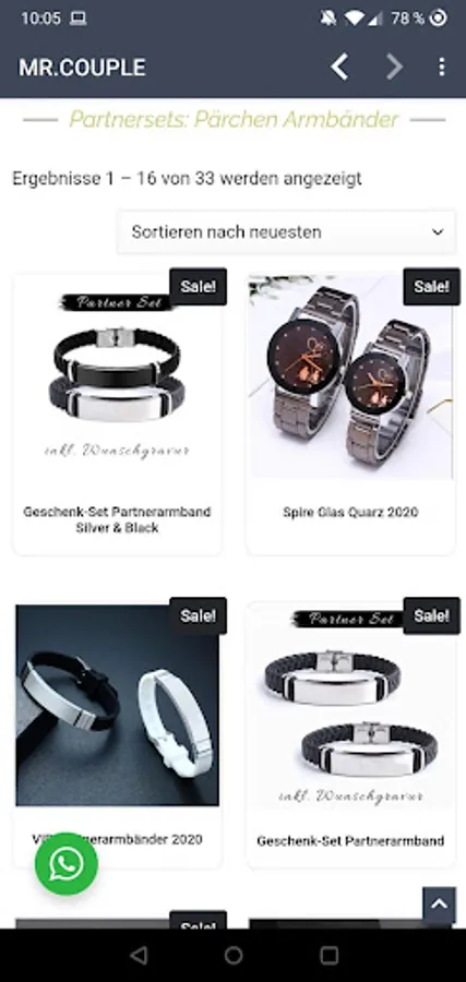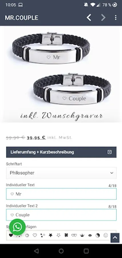Install the application from Mrcouple.de now and benefit from great offers that are otherwise not published. Discover jewelry, some of which can be personalized, great gift ideas and other accessories.