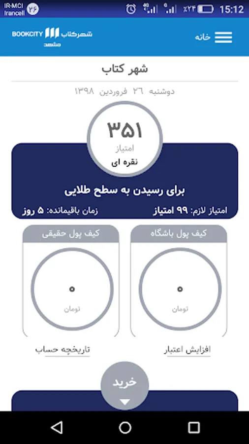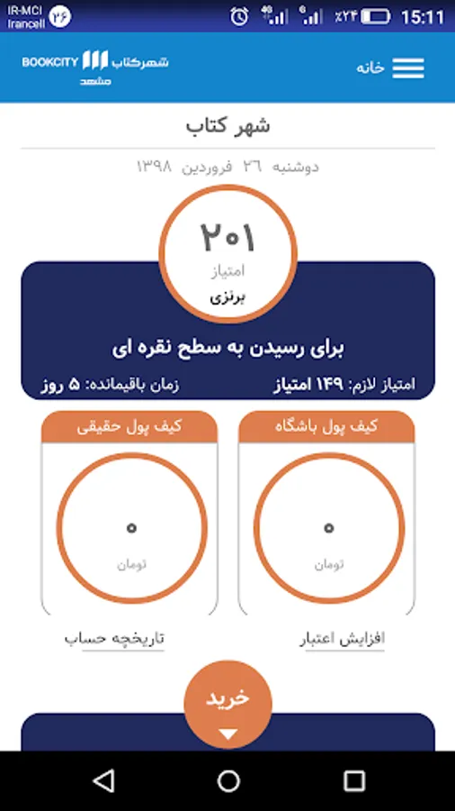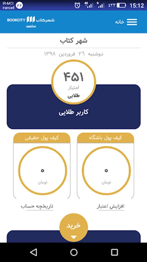 طلایی: بالای 450 امتیاز (15% مبلغ خرید)