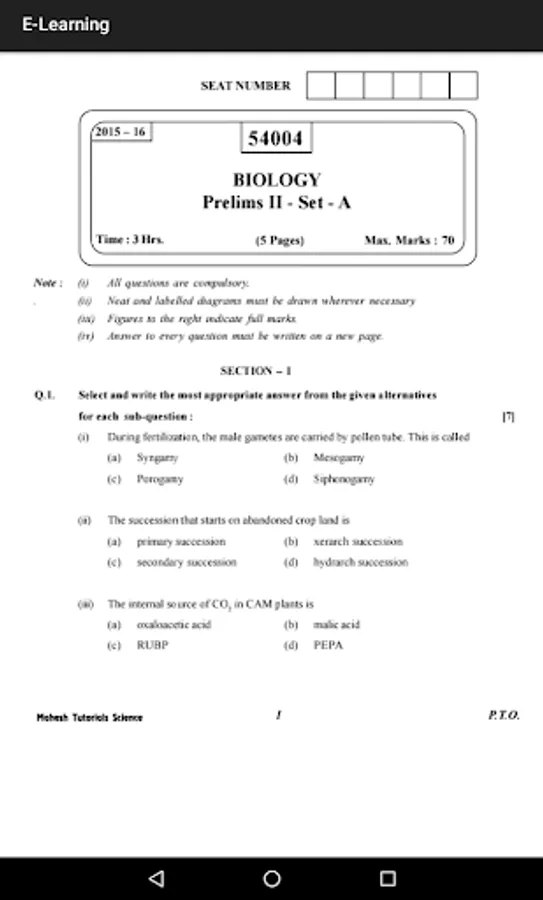E-Learning is providing notes, previous year question papers and online tests for JEE, NEET and MHT-CET students.