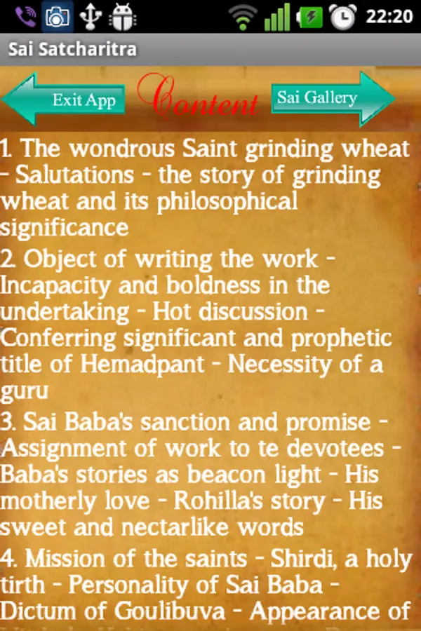 A mobile biography of the Shirdi Sai baba. This app provides Satcharitra of Sai baba and gallery of Sai Baba.