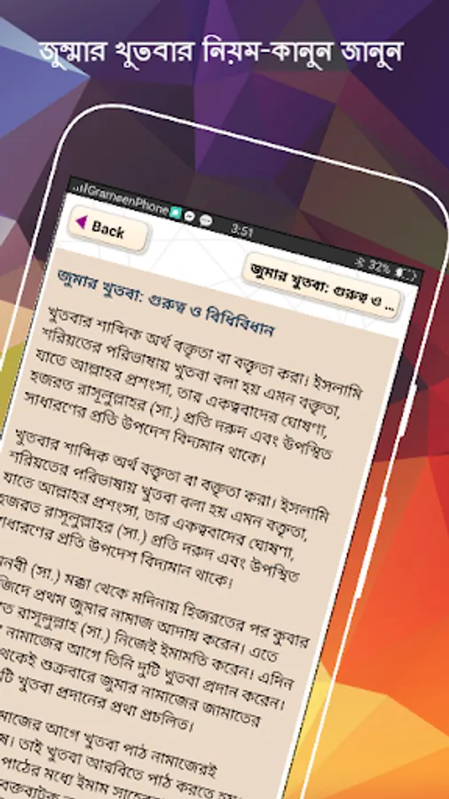 The Juma Khutba Bangla app has been arranged with descriptions of Arabic 12 months and two Eids.