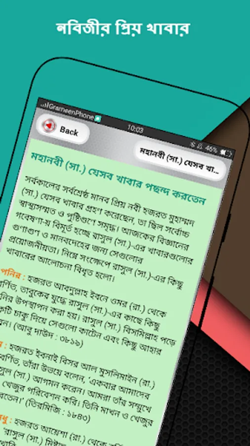 The foods that the Prophet liked and the way he ate and The app has been sorted with detailed descriptions which are advised.