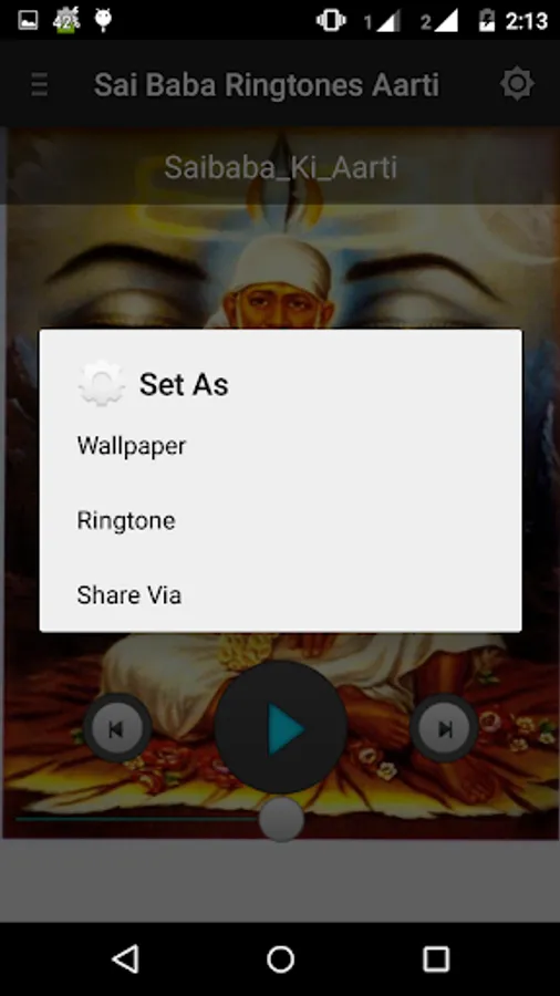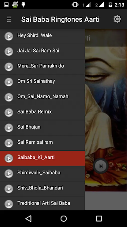 This application will give you large collection of Sai Baba, sai ram, sai bhagwan god and goddess Aarti, Bhajan, ringtones, stuti, Bhakti songs ringtones, mantras of all.