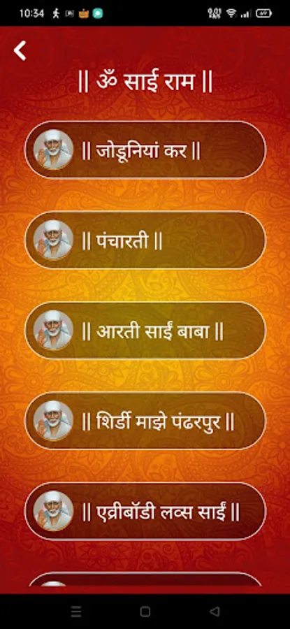 Sai Baba Aarti Song and Lyrics app is a nice collection of Shirdi Sai baba Namavali with Kakad Madhyan Dhoop shej aarati in audio mp3 and Lyrics.