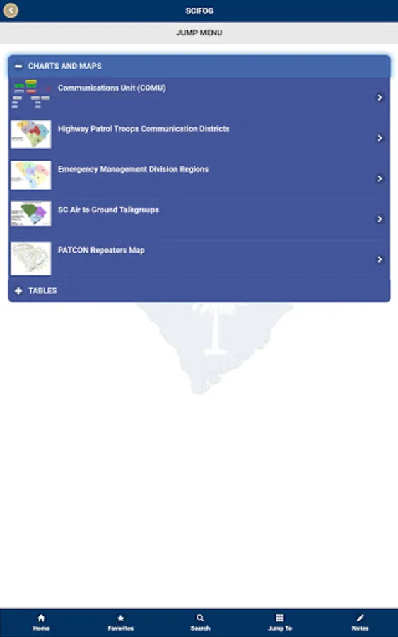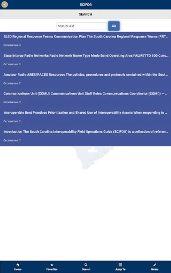The SCIFOG mobile app is an electronic reference of the South Carolina Interoperability Field Operations Guide. The SCIFOG is a technical reference for emergency communications planning and for radio technicians responsible for radios that will be used in disaster response. It includes rules and regulations for use by the State of South Carolina and other interoperability channels, tables of frequencies and standard channel names, and other reference material.