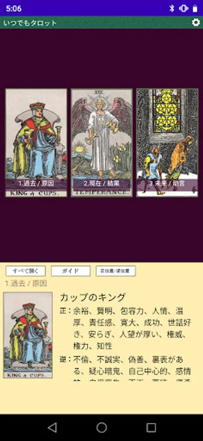 It is a tarot fortune-telling app that even beginners can easily fortune-telling. You can shuffle the cards, even complicated fortune-telling is easy to understand with the guide display, and there is also a function to read out the meaning of the card.