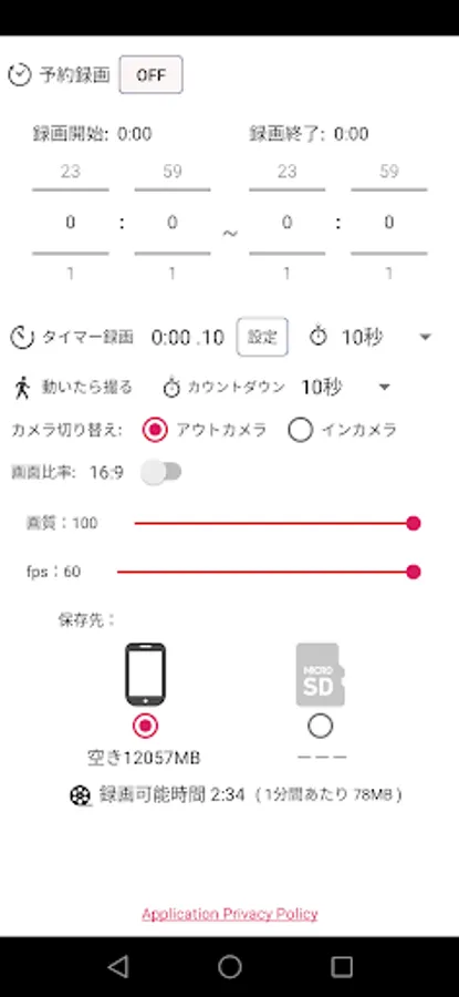 * It is an application that records videos by capturing the screen. You need to keep the app open even when you specify the time and record. You can reduce power consumption by lowering the brightness of the screen.