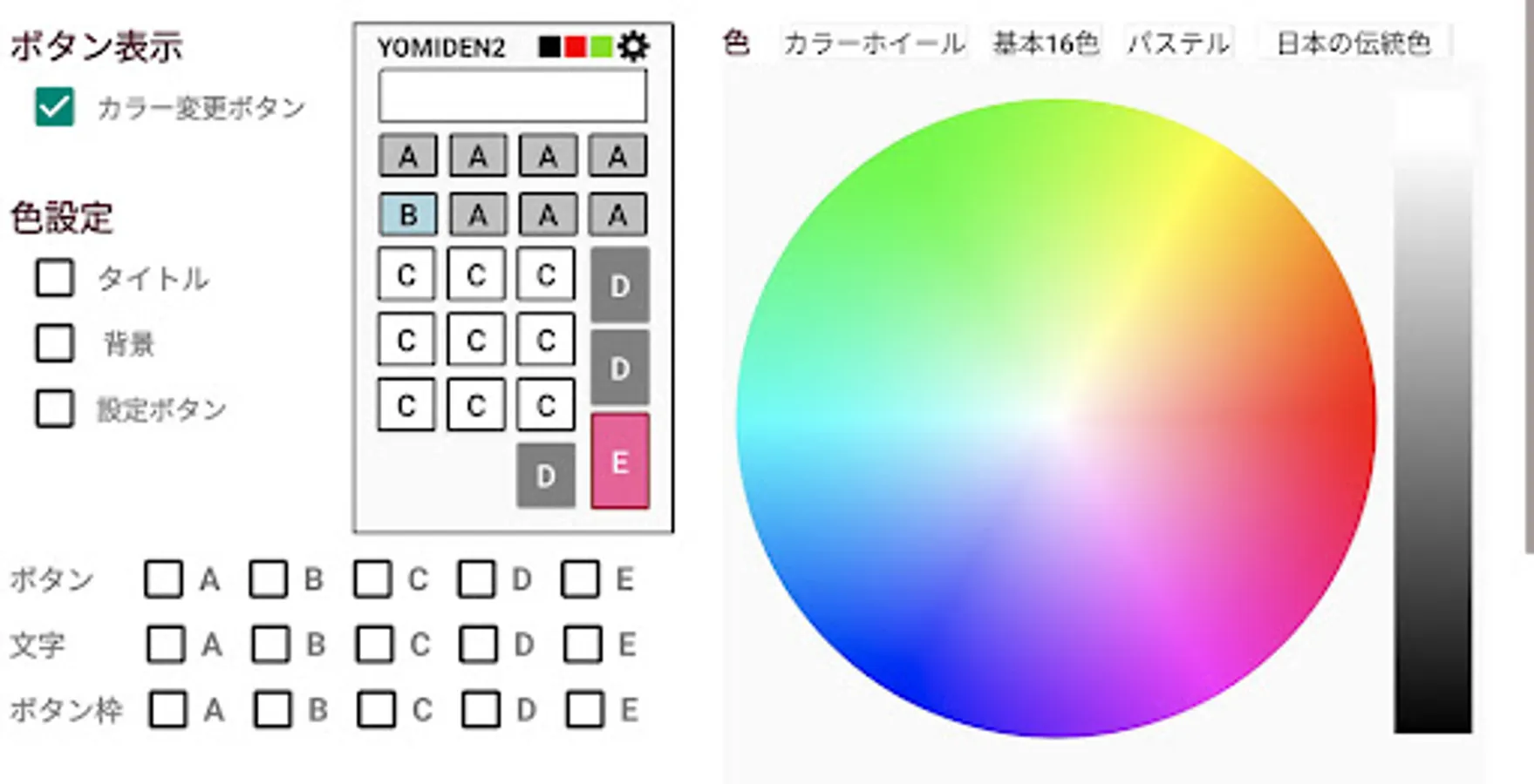 To change the color, check the part you want to change and tap the color sample to decide the color. By checking multiple boxes, you can set the same color all at once. You can choose from the color circle, 16 basic colors, pastel colors, and traditional Japanese colors.