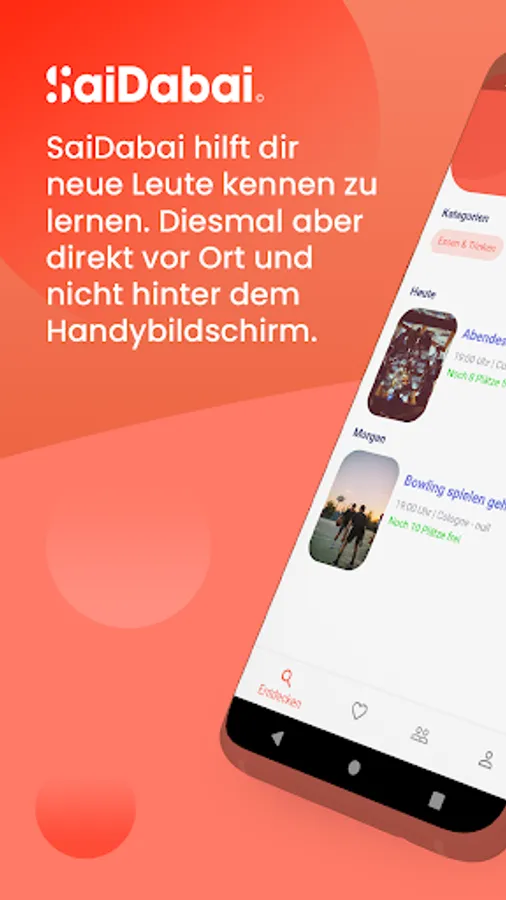 You don't yet know what to do on the weekend, but you want to experience something? Download Saidabai and join the events of your fellow human beings in your area. With SaiDabai you can not only join events in your area, but also plan and organize your private events.
