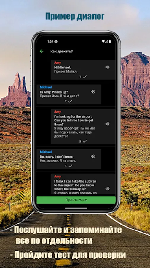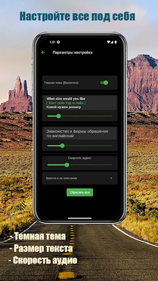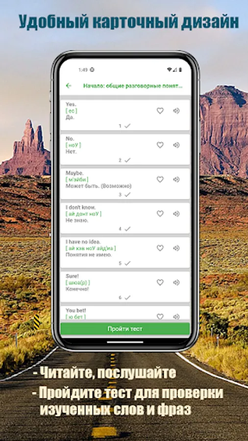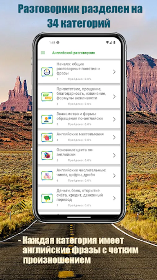 Each category contains the necessary phrases and words with transcription and clear pronunciation, and you can also share or save the word or phrase you need in your notes.