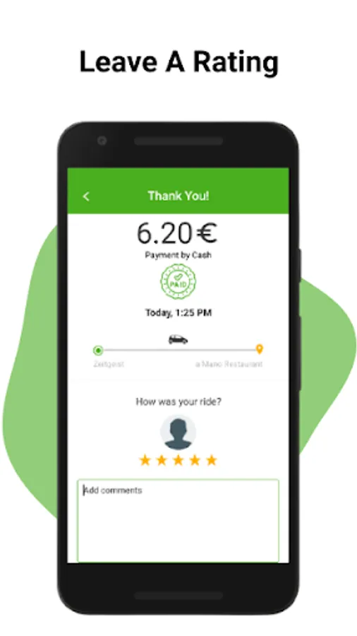 • Pay as you want - You are able to pay inside application Credit/Debit cards or with cash.