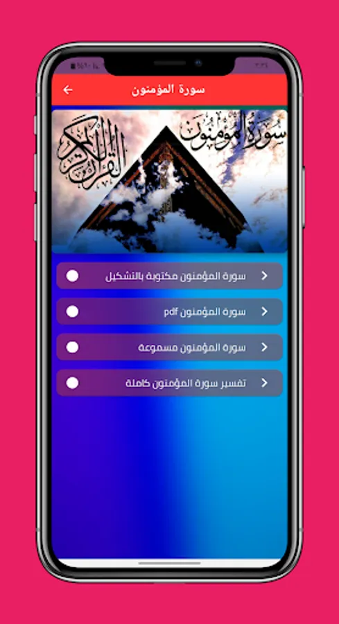 3- We offer you Surat Al-Muminoon complete with formation in our application