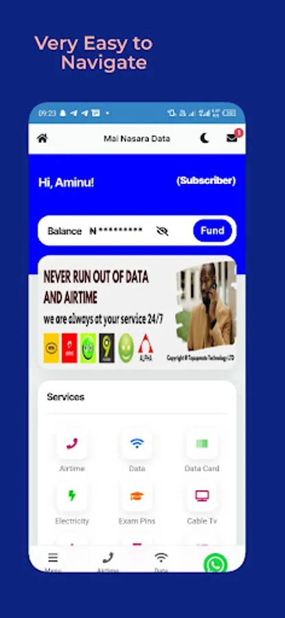 Mainasara Data is an awesome application that provides you with pocket friendly data and VTU of all networks to enable you stay connected with your family and friends