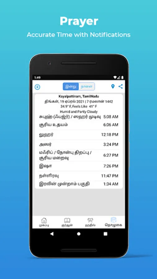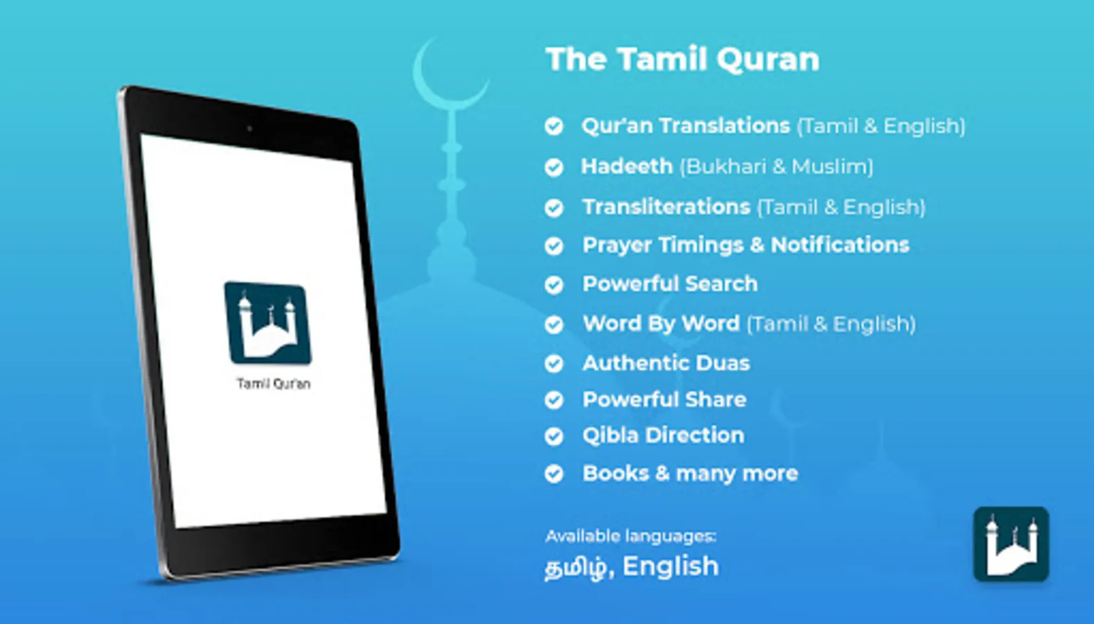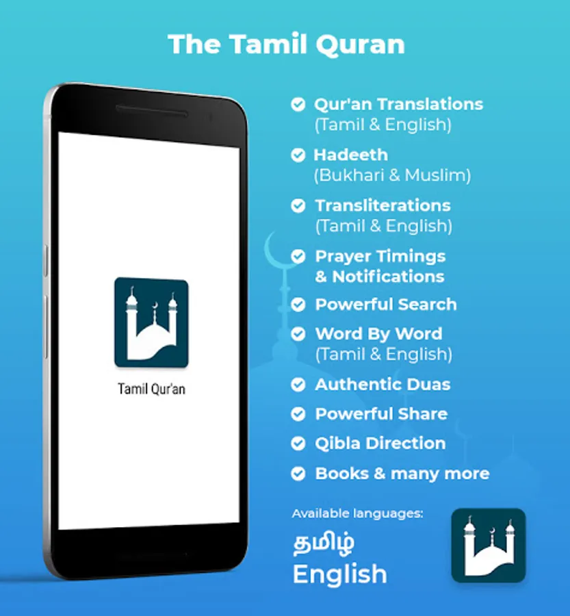 The Tamil Quran app includes the most popular Qur'an translation in Tamil, Duas, Books, Footnotes with unique features to recite, read and practice Qur'an and Sunnah in daily life.