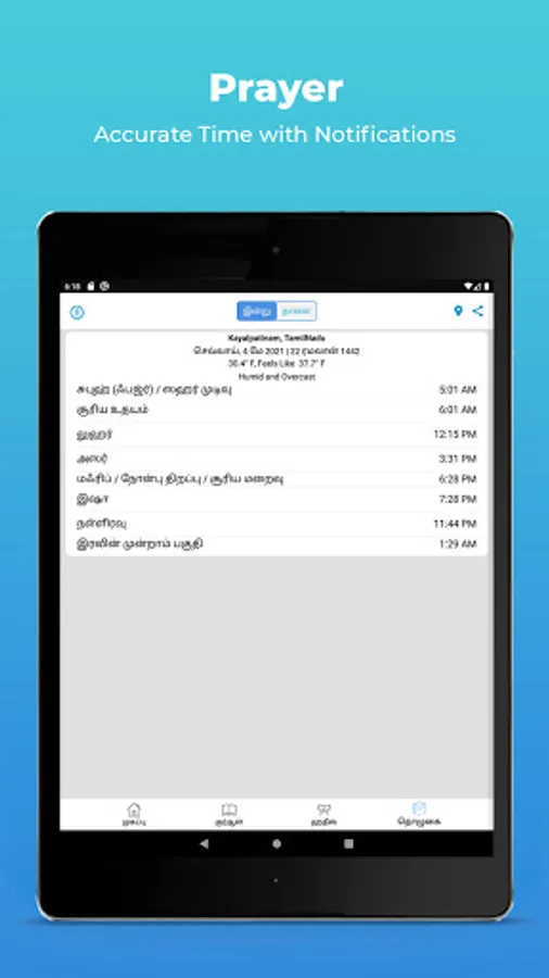 • Prayer Time & Notifications - App provides a way to see prayer times for today and tomorrow. App also provides accurate prayer time notifications.