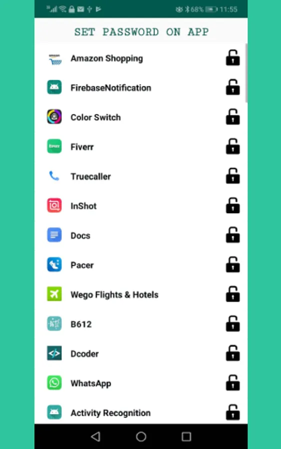 This is simple app locker app design for android phone for Oreo. It uses background services and Usage Stats Services with sqlite database to lock or unlock other app.