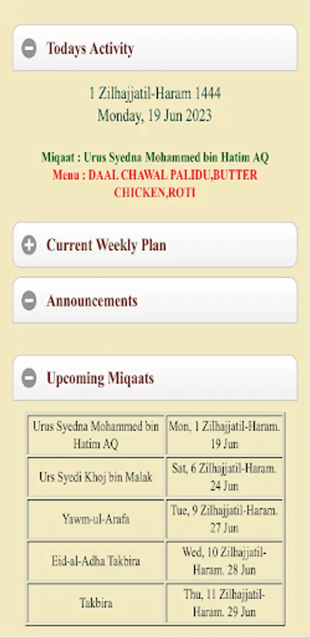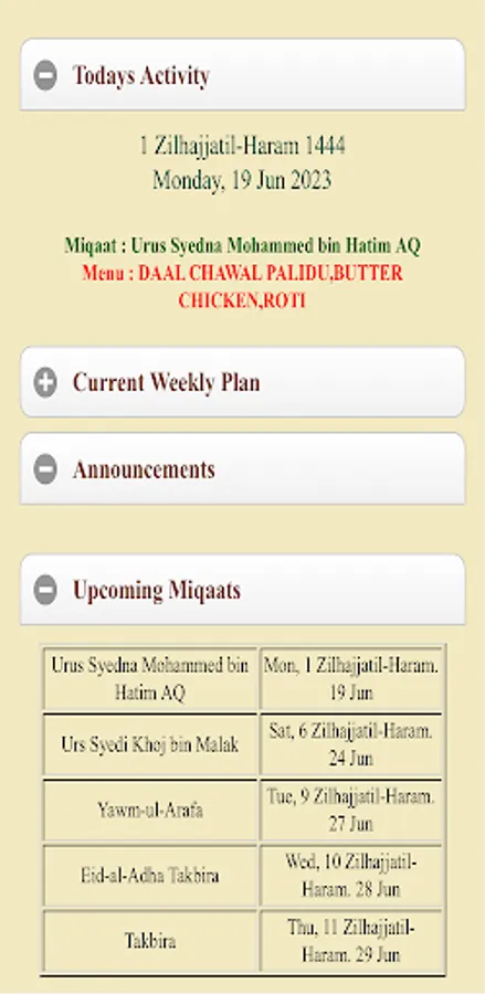 App Features: Jamaat Announcements/Communication, FAIZ UL MAWAID IL-BURHANIYAH Management, Weekly Menu, Monthly Menu & Thaali Revision, Stop Thaali Request
