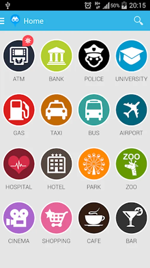 Find places like: • Airports, • Atm • Banks • Bus stations • Cafes • Car services • Convenience stores • Department stores • Gas stations / Petrol • Gymnasiums • Hardware stores• Hotels• Libraries• Museums• Night clubs• Pharmacies • Hospitals• Train stations and many more