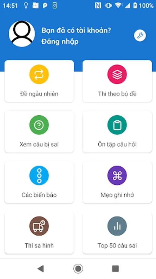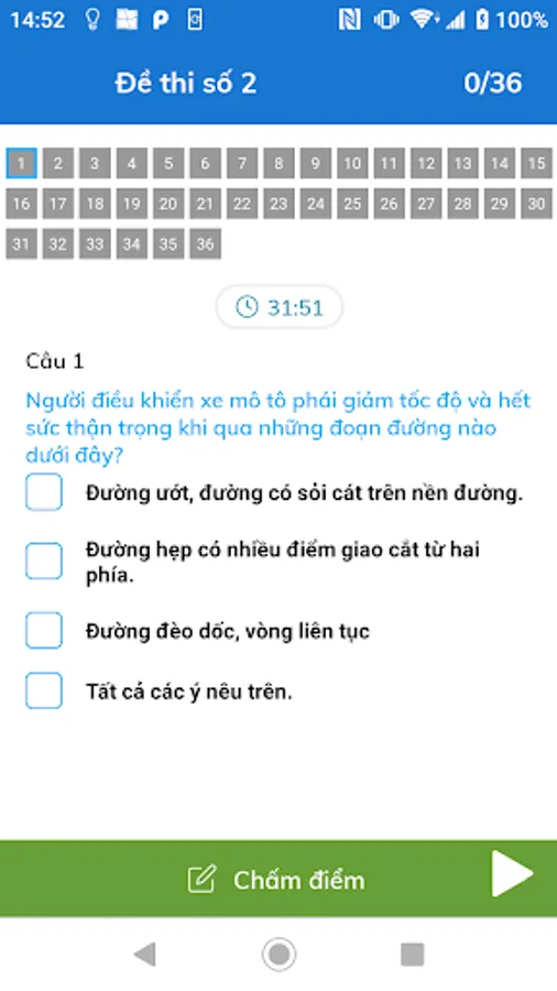 • Randomized test with thousands of exam questions according to the test structure of the Vietnam Road Administration.