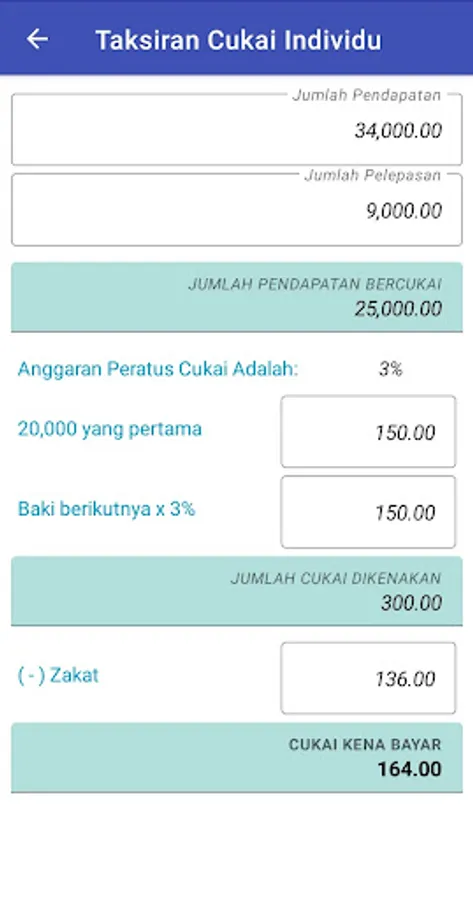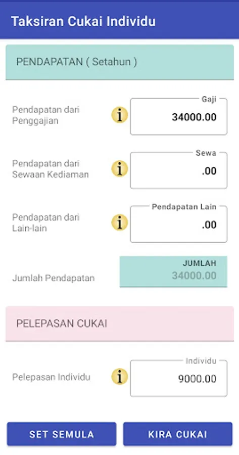 Calculate the estimated income tax by entering the relevant income and relief information.