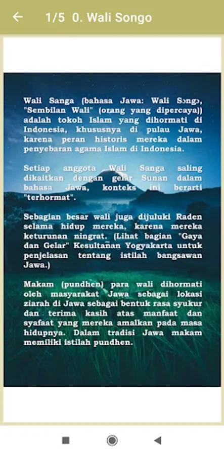 Nine songo saints who played an important role in the spread of Islam in Indonesia, especially on the island of Java, in the 14th and 15th centuries.