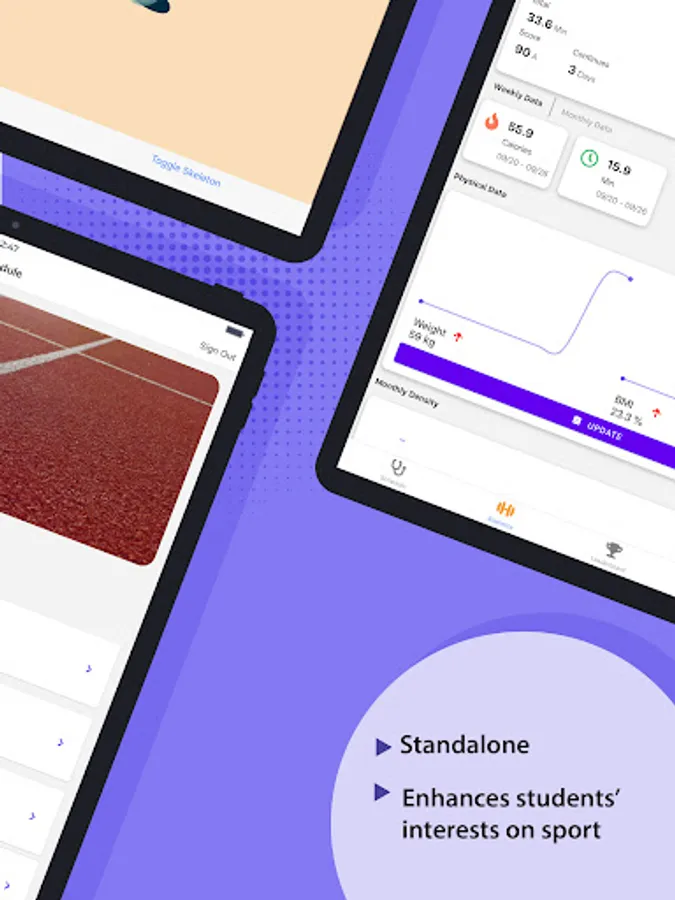After downloading this app and logging in, students can set the phone on a stand, then exercise in front of the front-facing camera on their phone. The app uses an AI to detect and analyse the movement of the student. It is able to determine the correctness of the movement and accurately track the progress. As such, teachers and parents can know more about their students' exercise habit.