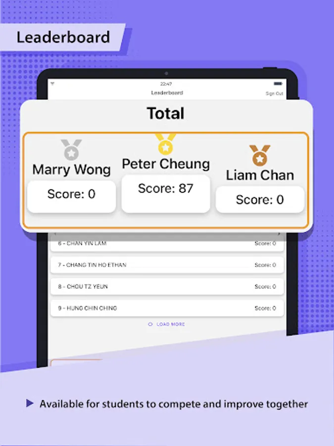 Using the rear-facing camera, the app can be used as an evaluation tool for teachers and coaches. This allows a more objective and fair evaluation tool compared to the peer evaluation system used currently. A leaderboard is also available for students to compete and improve together.