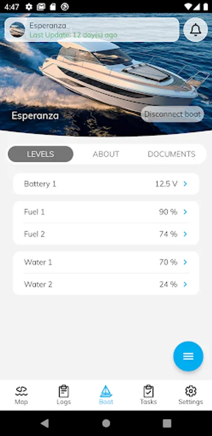- Monitor your boat's condition: check the status of your batteries, fuel, water and waste tank in a flash of an eye.