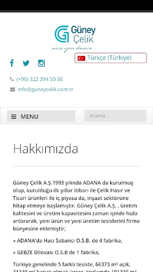 Güney Çelik Inc. was established in ADANA in 1993 and started to address the construction sector with the production of Çelik Hasır and Commercial products in the first years of its establishment. South Steel Inc. has increased its production quality and production capacity in time, adding new products and new production facilities to the company.