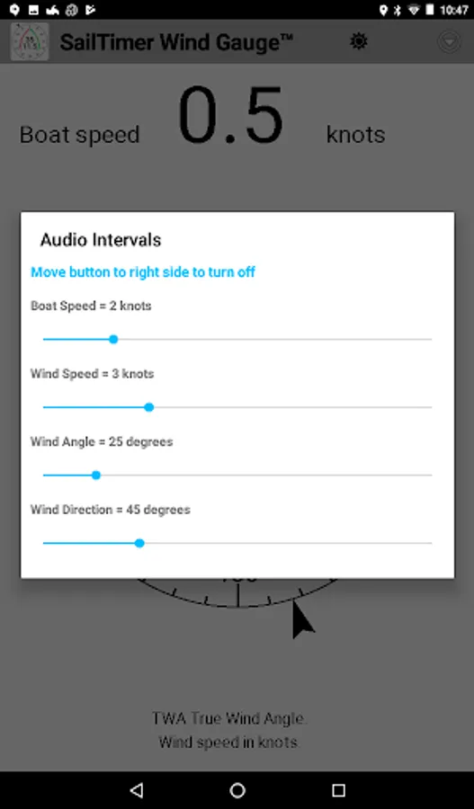 This app provides a visual wind gauge is a display for the wireless, solar-powered SailTimer Wind Instrument™. It also has a very handy audio feedback if you want to put your phone/tablet away to keep it safe, use a Bluetooth speaker and keep your hands and eyes free for sailing: see the description and 45-second YouTube demo at http://eepurl.com/dEGN7b