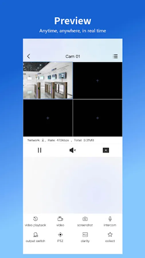 2. Real-time preview: support real-time video viewing through Wi-Fi, 3G, 4G, 5G, and provide functions such as video recording, screenshots, collection, and PTZ control during the video preview process;