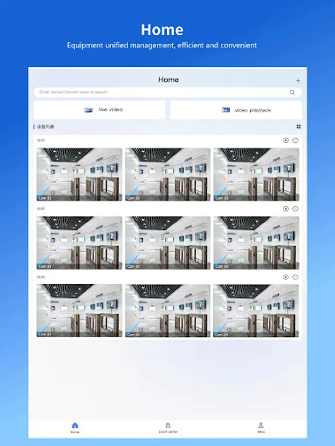 1. Device management: support scan code/manually add monitoring devices, and you can view the device list on the home page after adding the devices;
