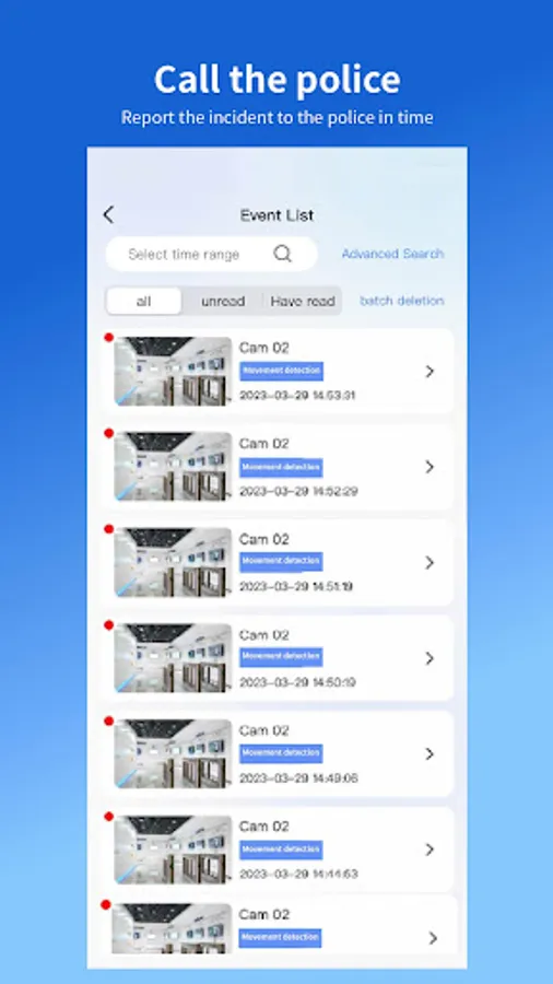 4. Event center: support the mobile terminal to obtain the alarm message of the monitoring equipment in real time, and view the details of the alarm event through the message;