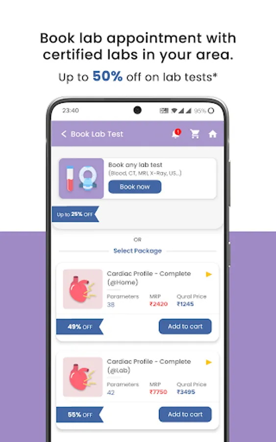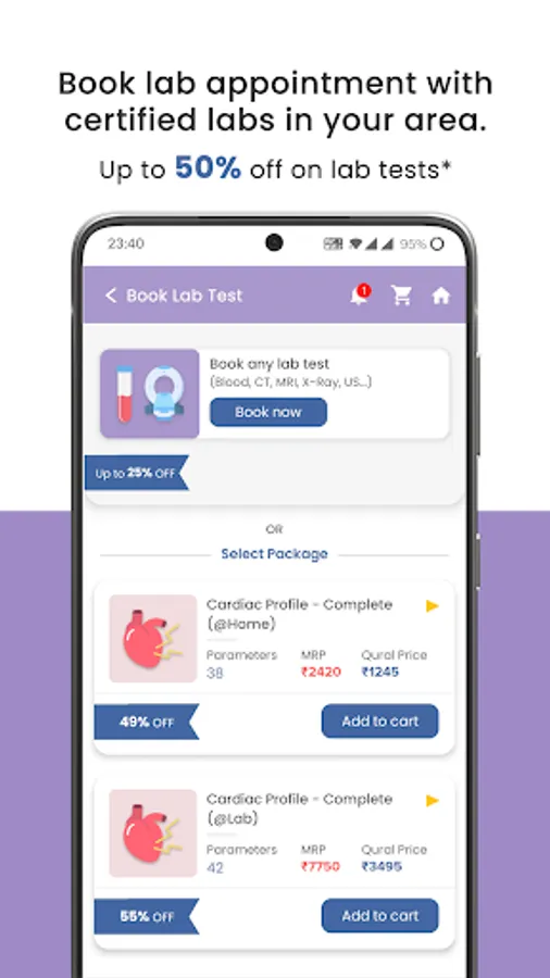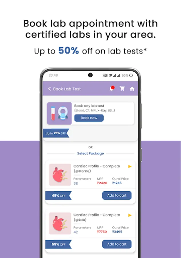 • Enjoy up to 50% discount in all test and scans on lab MRPs