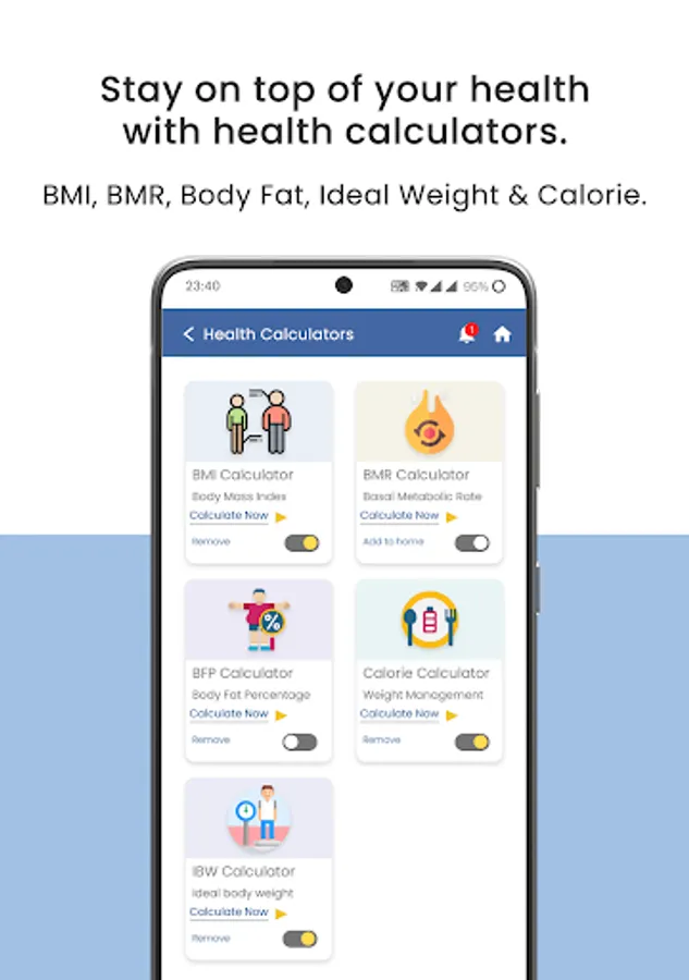 • Qural app provides you with several scientific and medical health calculators to keep track of your weight and monitor your health and fitness.